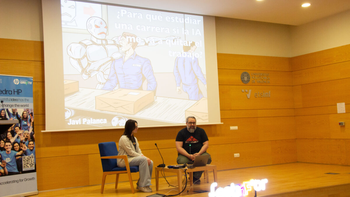 Bajo el título “¿Para qué estudiar una carrera si la IA nos va a quitar el trabajo?”, Javier Palanca abordó el pasado 8 de febrero, y como primera charla-coloquio, tras la inauguración de festinFor, la creciente influencia de la inteligencia artificial en la sociedad y en el mercado laboral.