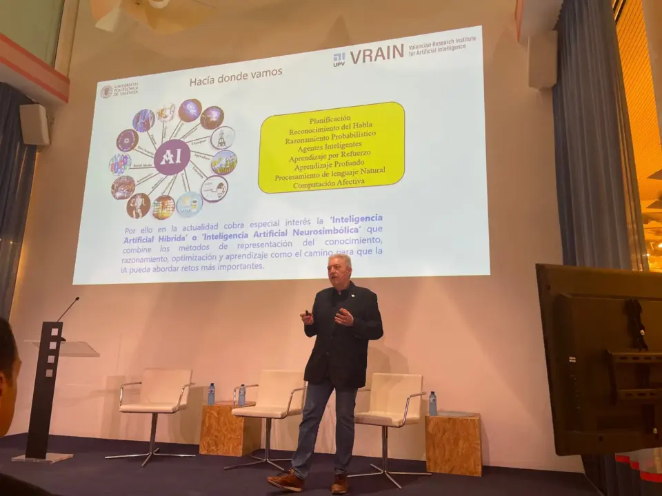 25/09/2025Published by prensa on 25/09/2025Categories NewsVicent Botti destaca que el futuro más inmediato de la IA pasa por una IA híbrida o IA neurosimbólicaEl director de VRAIN de la UPV ha participado en una jornada de Economía Digital bajo el título “Innovación con acento valenciano”