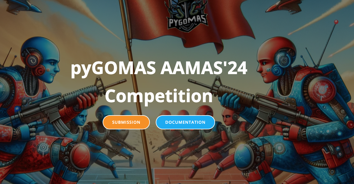 El concurso de estrategia multi-agente “pyGOMAS captura la bandera” trata de un software basado en Python para simular sistemas multi-agente en entornos de juego que invita a los equipos a presentar sus agentes de IA en desafíos estratégicos.